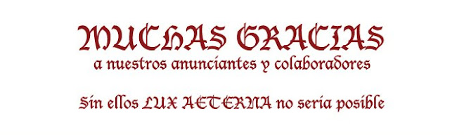 En este blog podrás encontrar el enlace al blog de la Pre-Hermandad de Jesucristo Resucitado, editora de LUX AETERNA. Enlazados también estarán otras páginas en las que podrás encontrar alguna información básica sobre cada uno de los números de LUX AETERNA. Asimismo, encontrarás una dirección de correo electrónico a la que dirigirte para pedir lo que quieras o realizar sugerencias de cualquier tipo. No tengas dudas de que todo lo que escribas será leído con atención.